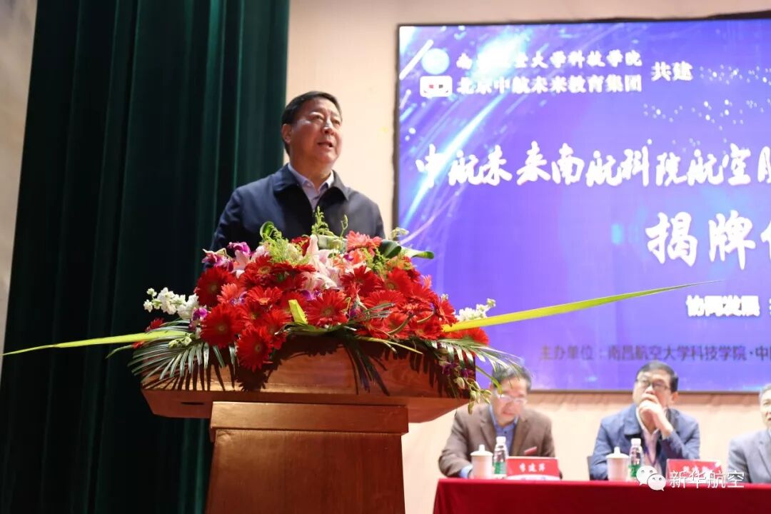 江西航空公司总经理张志忠在致辞中对实训基地的建立表示热烈祝贺,张志忠在发言中表示:“中航未来与江西航空发展以人为本、重视培训等很多方面不谋而合。江西航空将为中航未来教育集团的学生提供实训、实习、实践基地,培养创新实用性人才,建立适应市场需求的人才输送渠道,共同探索校企合作的新模式。”